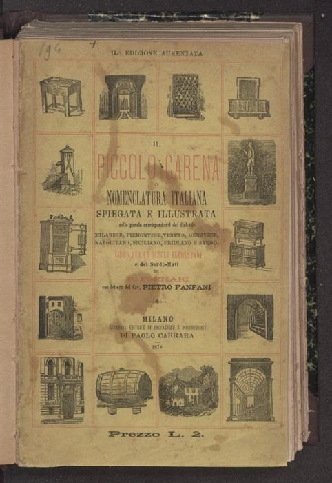 Il piccolo Carena o nomenclatura italiana spiegata e illustrata colle parole corrispondenti dei dialetti milanese, piemontese, veneto, genovese, napolitano, siciliano, sardo e friulano : libro per le scuole elementari e dei sordo-muti