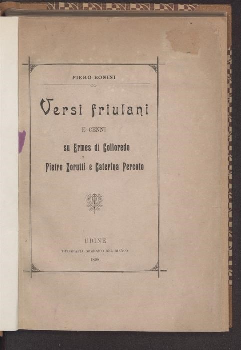 Versi friulani e cenni su Ermes di Colloredo Pietro Zorutti e Caterina Percoto