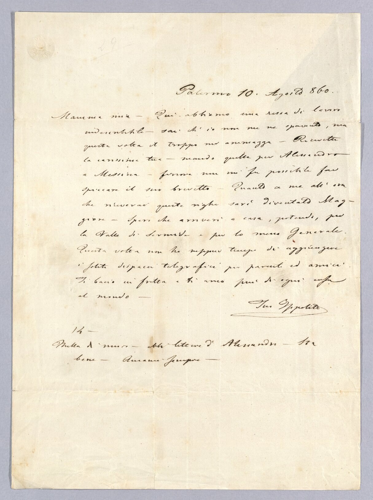 Lettera di Ippolito Nievo ad Adele Marin Nievo