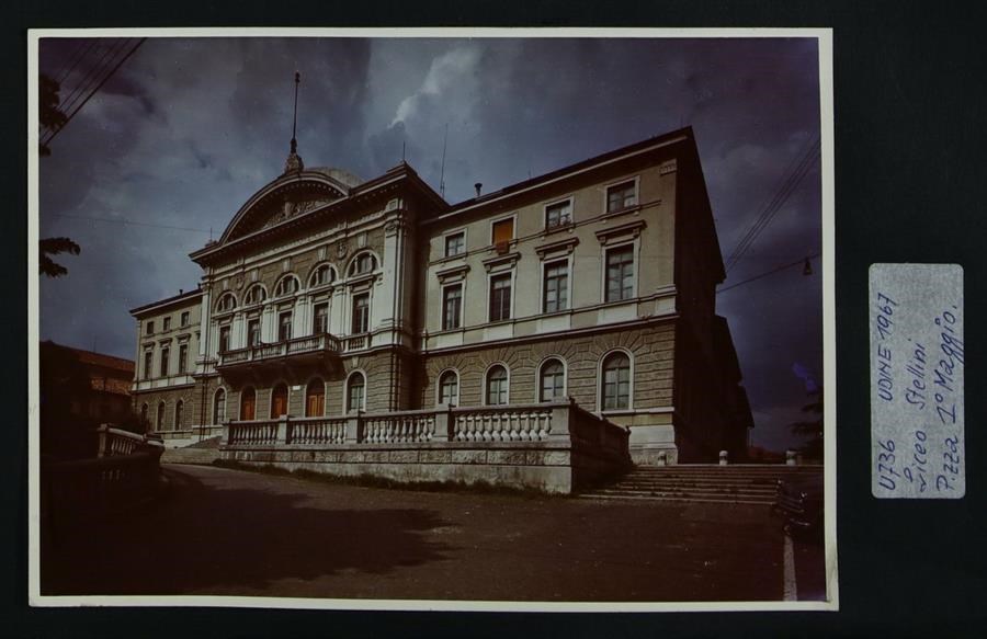 Udine, piazza I Maggio: Il liceo classico statale "Jacopo Stellini" nel palazzo finito di costruire nel 1915 che aveva anche accolto il Comando supremo militare italiano (dal 1919 diventò definitivamente sede del liceo).