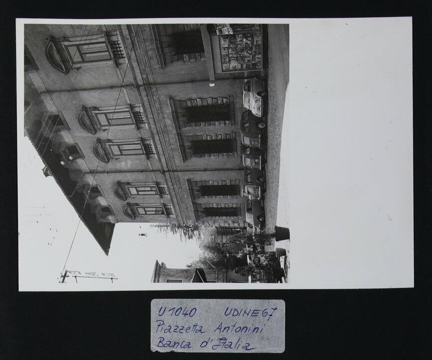 Udine, piazzetta Antonini: veduta di Palazzo Antonini-Maseri (sede della Banca d'Italia dal 1900 fino al 2009) realizzato su progetto dell'architetto Andrea Palladio e su commissione dell'aristocratico Floriano Antonini (1556). In basso a destra, un chiosco-edicola di giornali.