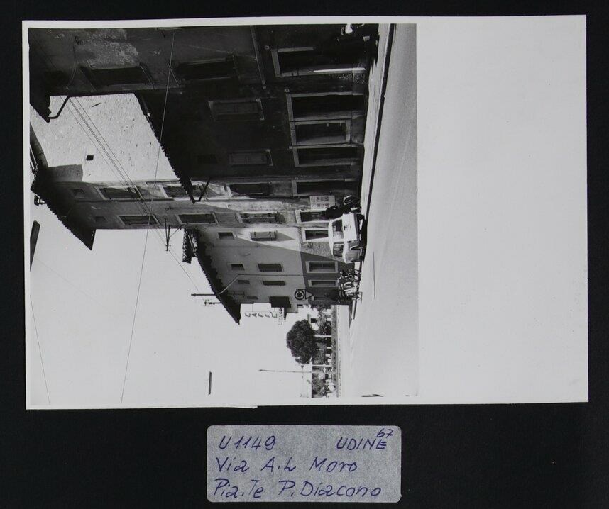 Udine: veduta di via Anton Lazzaro Moro. All'angolo, su piazzale Paolo Diacono, un caffè.