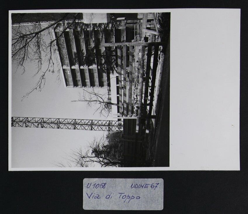 Udine, via Francesco di Toppo: condominio e lavori in corso presso un cantiere edile.