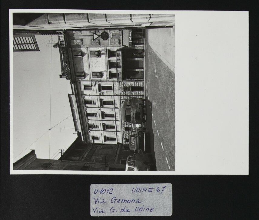 Udine, angolo via Gemona e Giovanni da Udine: a sinistra, la "Premiata Tintoria L. Lestuzzi", esistente dal Cinquecento in quella via. A destra, un punto vendita dell'azienda Cinzano.