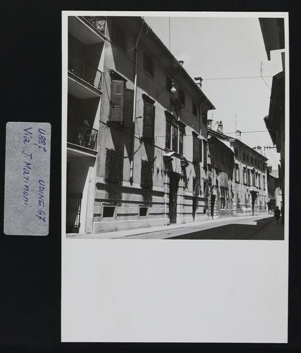 Udine, via Jacopo Marinoni 10: Palazzo Colloredo-Orgnani, ristrutturato in più occasioni (fine del XVII secolo-inizi del XVIII secolo, 1860), rendendo l'edificio nello stato attuale; in fondo a destra, Palazzo Fistulario-Plateo-De Portis, al civico n. 14, di origine settecentesca (l'assetto attuale risale al 1765 ca.).