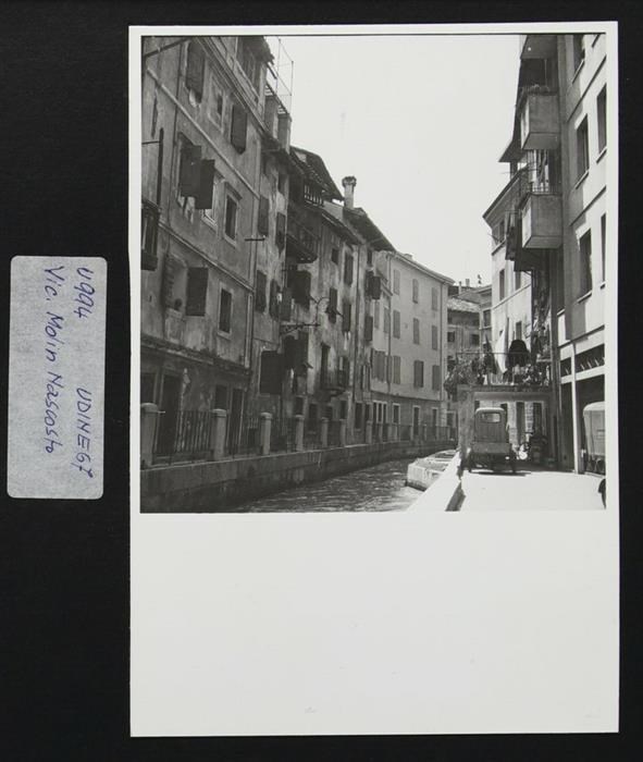 Udine: veduta di vicolo Molin Nascosto con la roggia di Udine, affiancata da parapetti e sponde lapidei.