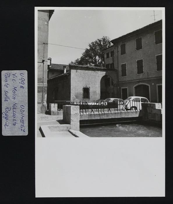 Udine: veduta di vicolo Molin Nascosto con un ponte sulla roggia di Udine, affiancata da parapetti e sponde lapidei. A sinistra si intravede la parte retrostante di Palazzo Antonini-Maseri (sede della Banca d'Italia dal 1900 fino al 2009), realizzato su progetto dell'architetto Andrea Palladio e su commissione dell'aristocratico Floriano Antonini (1556).
