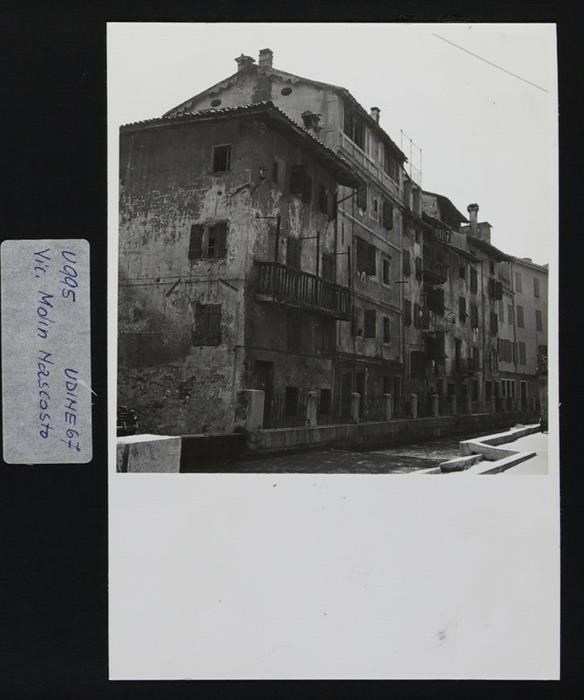 Udine: veduta di vicolo Molin Nascosto con la roggia di Udine, affiancata da parapetti e sponde lapidei.