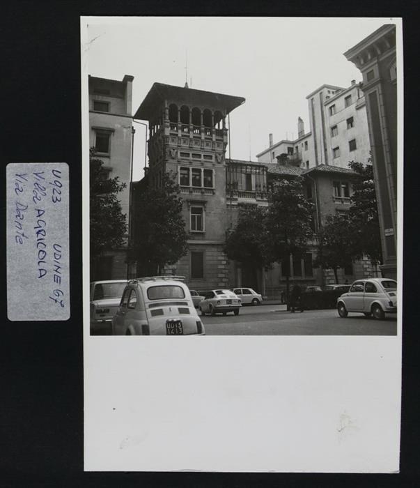Udine, via Dante 10: Palazzo Agricola (inizi del Novecento). A sinistra si intravede Palazzo Fior, edificio pluripiano dell'architetto Benvenuto Elia Fior (1935). A destra si intravede la scuola elementare al tempo intitolata a Vittorio Emanuele III, ora a Dante Alighieri (1902-1905), edificata nell'ex “Braida Codroipo“.