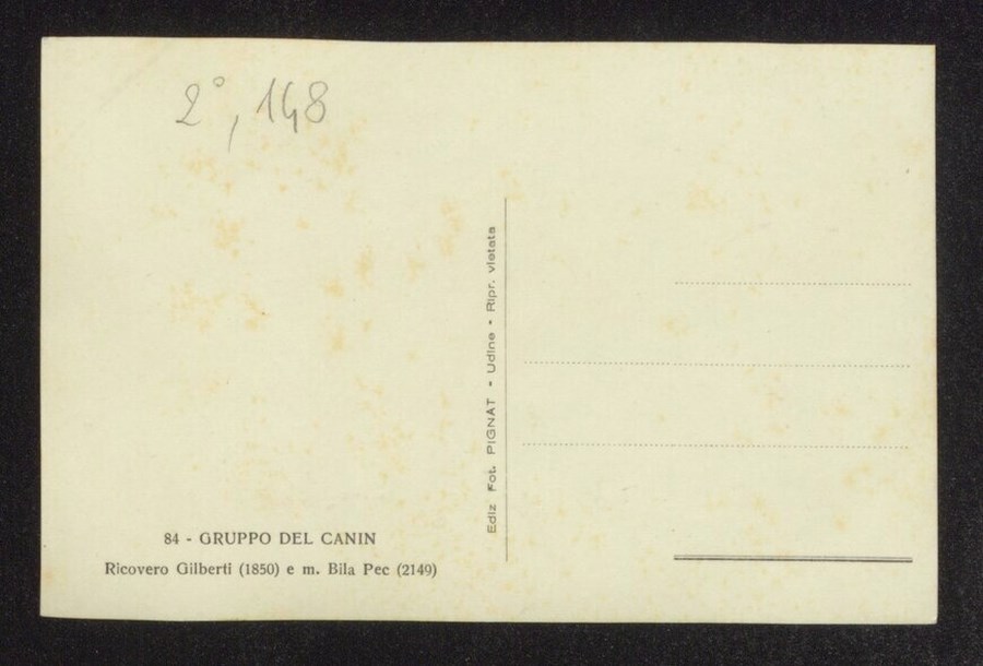 84. Gruppo del Canin. Ricovero Gilberti (m.1850) e M. Bila Pec (2149)