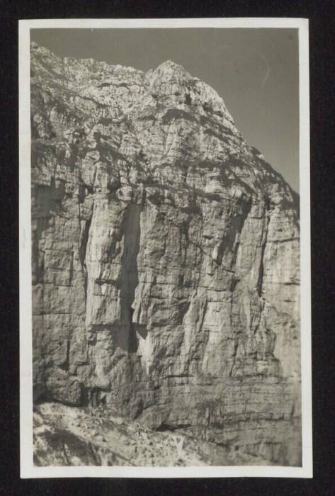 Veduta della parete Sud-Est del monte Bila Pec, che emerge dall'altopiano carsico sul versante settentrionale del gruppo del Canin.
