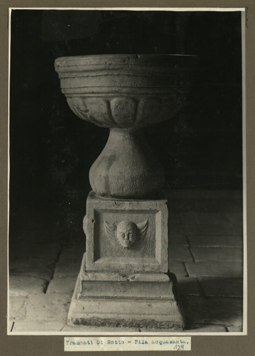 Acquasantiera in pietra conservata presso la Chiesa di Santa Maria Maggiore di Tramonti di Sotto