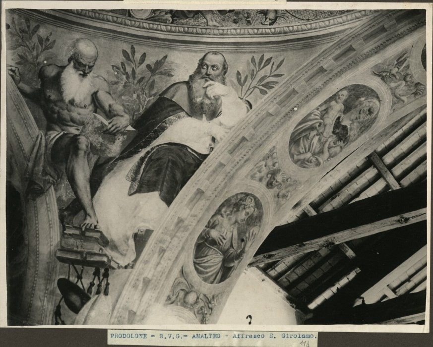 Documentazione fotografica degli affreschi della volta del presbiterio ad opera di Pomponio Amalteo nel 1538 presso la Chiesa della Beata Vergine delle Grazie a Prodolone di San Vito al Tagliamento e raffigurante San Girolamo.
