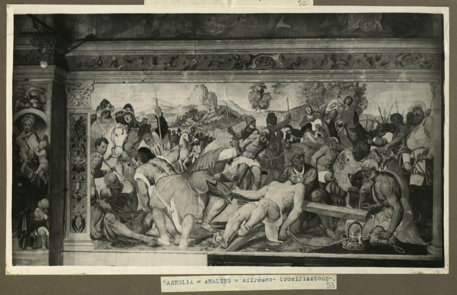Riproduzione fotografica dell'affresco raffigurante "la Crocifissione" a opera di Pomponio Amalteo tra il 1544 e 1550 sulla parete sinistra del coro presso la Chiesa di Santa Croce a Baseglia di Spilimbergo.