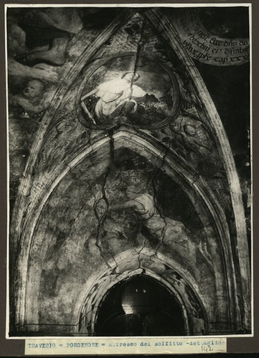 Riproduzione fotografica di un dettaglio degli affreschi del Pordenone eseguiti nell'abside poligonale della Chiesa di San Pietro Apostolo a Travesio, uno dei cicli a fresco più ampi conservatosi dell'artista.