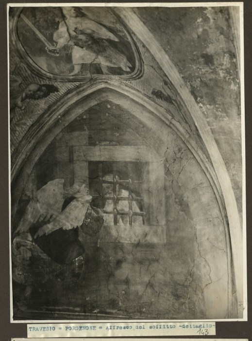 Riproduzione fotografica di un dettaglio degli affreschi del Pordenone eseguiti nell'abside poligonale della Chiesa di San Pietro Apostolo a Travesio, uno dei cicli a fresco più ampi conservatosi dell'artista.