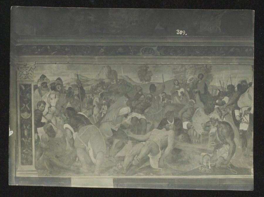 Affreschi raffiguranti Storie della passione di Cristo nell'abside della Chiesa di Santa Croce a Baseglia, a opera di Pomponio Amalteo.