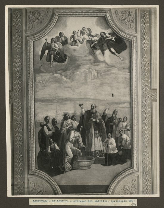 Riproduzione fotografica dell'affresco del soffitto della Chiesa di San Silvestro a Lorenzaga a Motta di Livenza e raffigurante " Il battesimo di Costantino" a opera di Paolo de Lorenzi all'inizio dell'800.