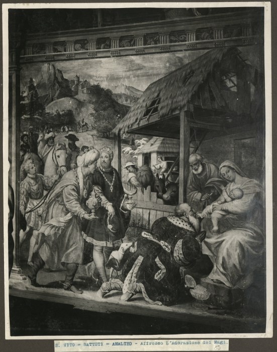 Riproduzione fotografica di uno degli affreschi, a opera di Pomponio Amalteo tra il 1535 e il 1546, situati nell'abside della Chiesa di Santa Maria dei Battuti a San Vito al Tagliamento e raffigurante "L'adorazione dei Re Magi".