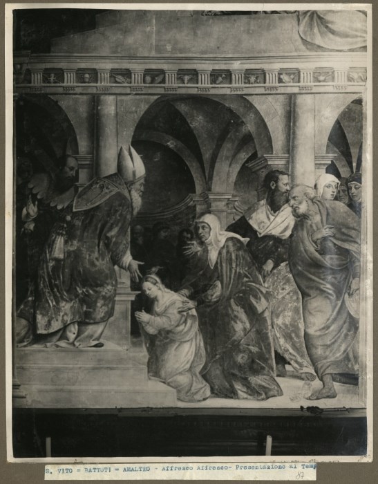 Riproduzione fotografica di uno degli affreschi, a opera di Pomponio Amalteo tra il 1535 e il 1546, situati nell'abside della Chiesa di Santa Maria dei Battuti a San Vito al Tagliamento e raffigurante la "Presentazione di Maria al Tempio".