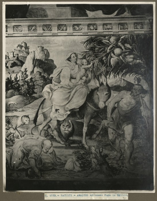 Riproduzione fotografica di uno degli affreschi, a opera di Pomponio Amalteo tra il 1535 e il 1546, situati nell'abside della Chiesa di Santa Maria dei Battuti a San Vito al Tagliamento e raffigurante la "Fuga in Egitto".