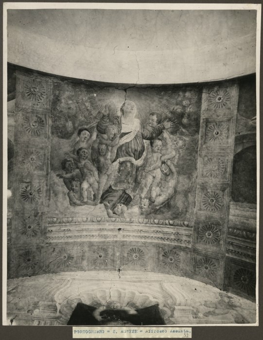 Riproduzione fotografica di un affresco, probabilmente non più esistente, raffigurante la " Madonna assunta tra gli angeli" nella volta di una nicchia nella Chiesa di Sant’Agnese a Portogruaro.