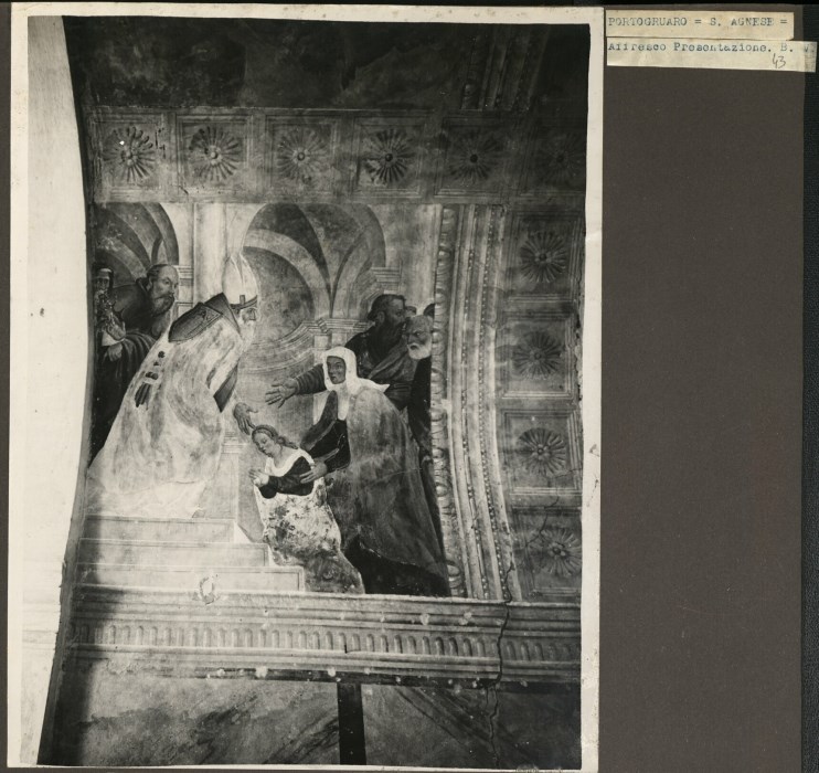 Riproduzione fotografica di un affresco, probabilmente non più esistente, raffigurante la " Presentazione della Vergine" nella volta di una nicchia nella Chiesa di Sant’Agnese a Portogruaro.