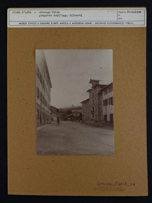 Arta Terme, Piano d'Arta: l'albergo Poldo (a sinistra), commissionato dal conte Leopoldo Radina Dereatti (1872 ca.) e realizzato su disegno dell'architetto Ettore Gilberti.