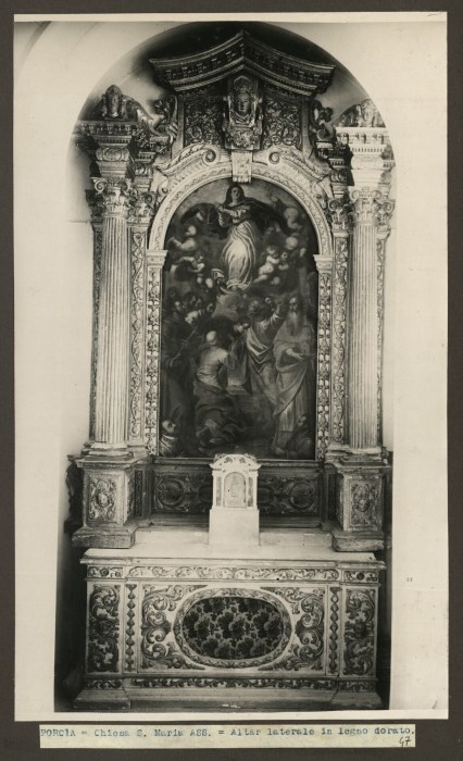 PORCIA = Chiesa S. Maria ASS. = Altar laterale in legno dorato.