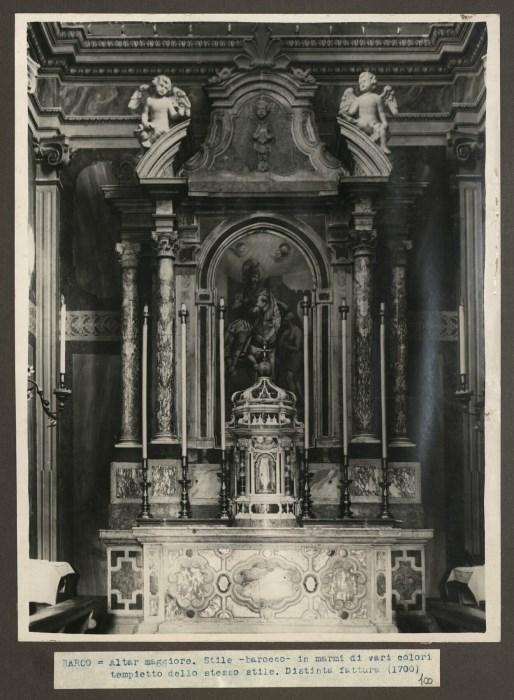 BARCO = Altar maggiore. Stile -barocco- in marmi di vai colori tempietto dello stesso stile. Distinta fattura (1700)