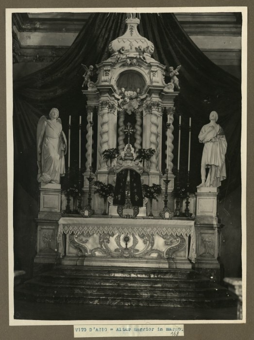 Riproduzione fotografica dell'altare maggiore in marmo nella Chiesa di San Michele Arcangelo di Vito d'Asio.