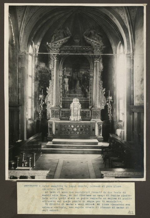 CORBOLONE = Altar maggiore in legno dorato, barocco di pure linee classiche 1570.