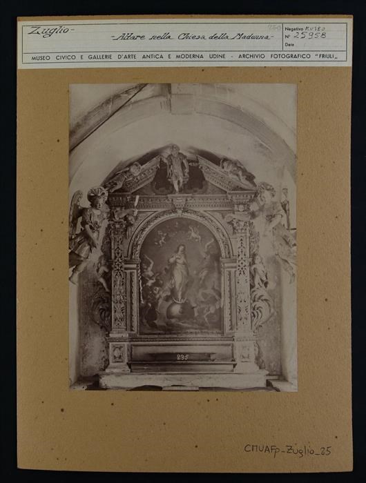 Zuglio, chiesa della Beata Vergine delle Grazie: altare settecentesco ligneo della Beata Vergine Immacolata con una pala che rappresenta l'Immacolata Concezione.