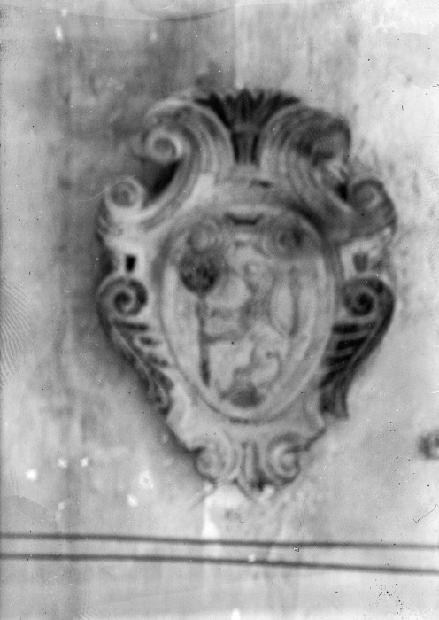 Riproduzione fotografica di un altorilievo raffigurante uno stemma di un casato o di una cittadina.