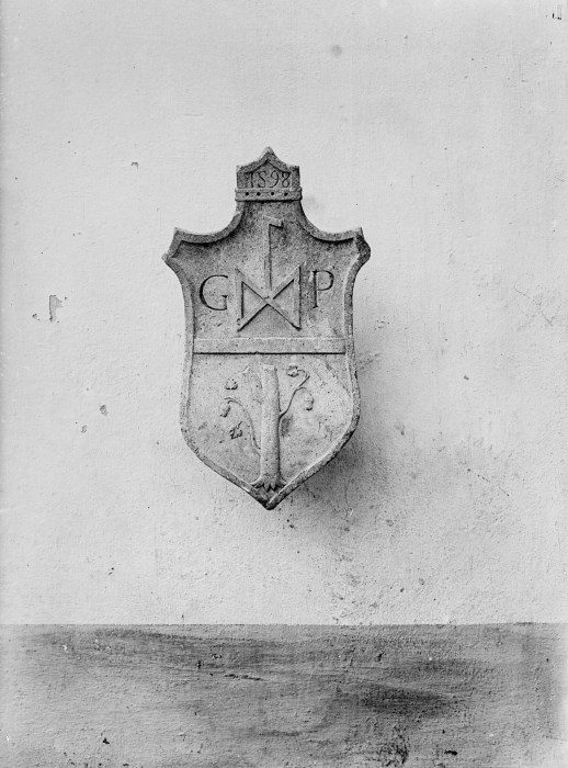 Riproduzione fotografica di uno stemma in altorilievo posizionato sulla parete esterna di un edificio.