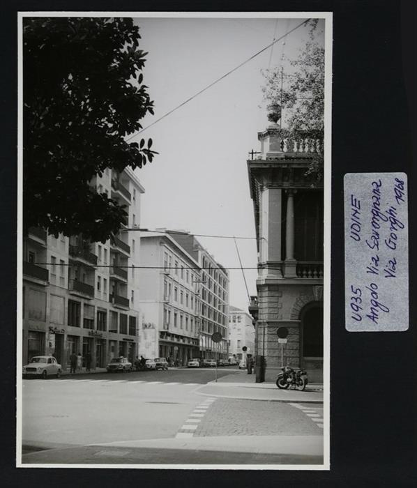 Udine: veduta di via Gorghi e via Savorgnana con, a destra, Palazzo Schiavi, realizzato per l'avv. Schiavi su progetto degli architetti Arduino e Ruggero Berlam (1912).