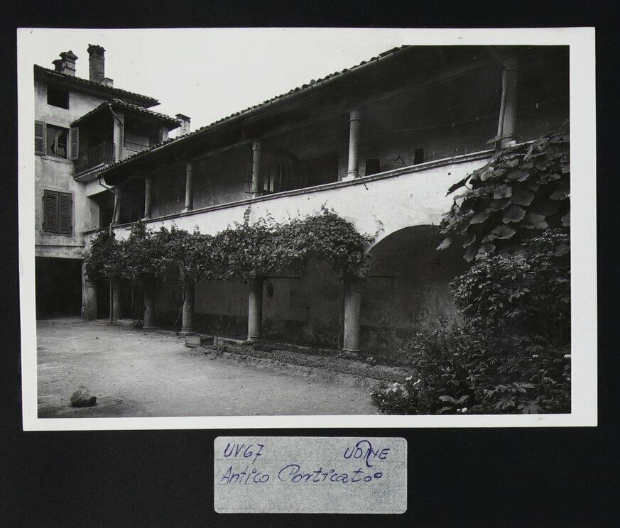 Udine: abitazione che si sviluppa su due piani con colonne che sostengono, al piano terra, grandi arcate in muratura, su cui si trova l'edera rampicante. La tipologia ricalca quella del portico-loggia nelle residenze venete pre-palladiane.