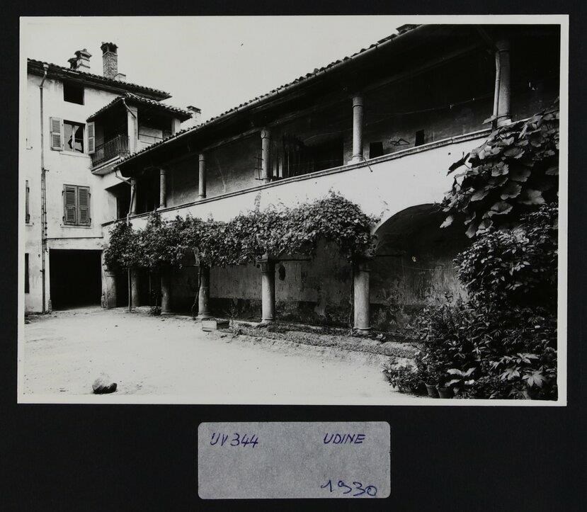 Udine: abitazione che si sviluppa su due piani con colonne che sostengono, al piano terra, grandi arcate in muratura, su cui si trova l'edera rampicante. La tipologia ricalca quella del portico-loggia nelle residenze venete pre-palladiane.