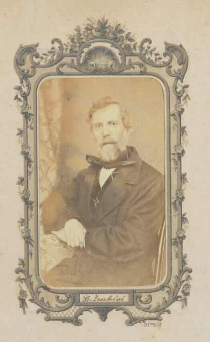Ritratto, in studio, dell'agronomo e giornalista Giovanni Battista Zecchini (1804-1870). Nato a San Vito al Tagliamento, quinto di 12 figli, fu possidente e rimase celibe. Valentissimo agronomo, fu il collaboratore più assiduo del primo periodico agrario friulano, «L’amico del contadino» stampato tra 1842 e 1848. Fu autore di numerosi articoli sulla bachicoltura e l'industria serica friulana. Negli anni '50 e '60 fu pure articolista de «L’annotatore friulano», della «Rivista friulana» e del prestigioso «Bullettino dell’Associazione agraria friulana», in cui continuò a scrivere in tema di sericoltura ma anche altri argomenti come alimentazione e conservazione degli alimenti, colture del mais e del frumento, pollicoltura, ricchezze minerarie del Friuli, irrigazione ecc. concorrendo d assicurare un elevato livello culturale e scientifico ai periodici agrari friulani ottocenteschi. Il fratello Pier Viviano, medico e letterato, è ritratto nella carte de visite ID 2325.