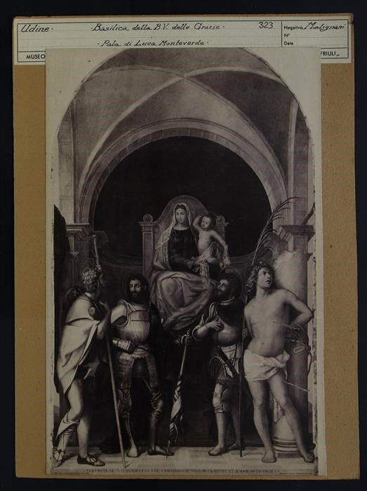 Udine, santuario della Beata Vergine delle Grazie, presbiterio: pala dell'altare maggiore di Luca Monteverde (1522) raffigurante la Madonna con Bambino in trono e, ai piedi, i Santi Rocco, Sebastiano, Gervasio e Protasio.