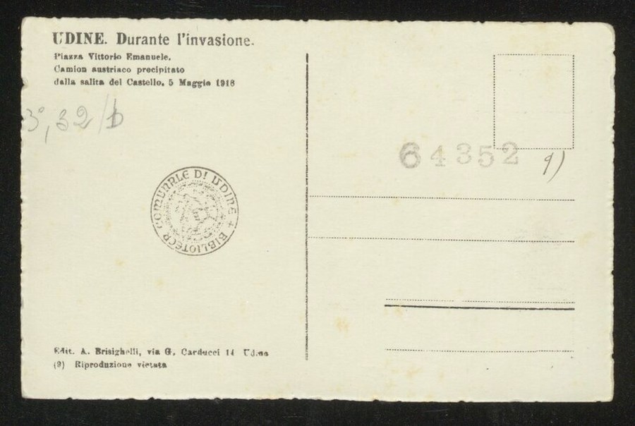Camion austriaco precipitato dalla salita del castello, 5 Maggio 1918