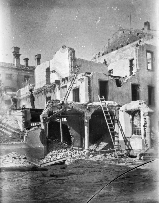Cantiere di demolizione del quartiere tra le vie Cavour, Rialto e Lionello per la costruzione di Palazzo D'Aronco