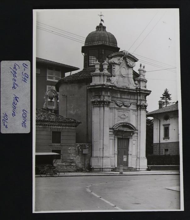 Udine, via dei Torriani: la cappella Manin, o chiesa di Santa Maria dell'Umiltà, nata per volere di Ludovico Manin (inizi del Settecento). A destra, Villa Orgnani in stile liberty, all'angolo con via Giuseppe Girardini.