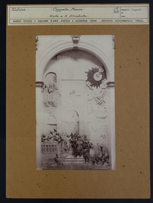 Udine, cappella Manin (chiesa di Santa Maria dell'Umiltà), parete: Visita a Santa Elisabetta, episodio della vita di Maria in altorilievo realizzato in stile barocco e in marmo di Carrara da Giuseppe Torretti (1729-1733).