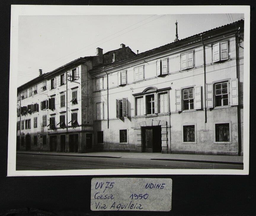 Udine, via Aquileia: palazzo storico e, in primo piano, le rotaie del tram.