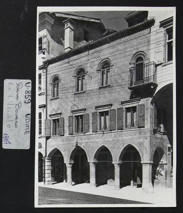 Udine, via Vittorio Veneto: Casa Lovaria-Asquini (restaurata nel 1935). Al piano terra sono presenti quattro archi in stile gotico e lì si trovava una farmacia (dal 1847).