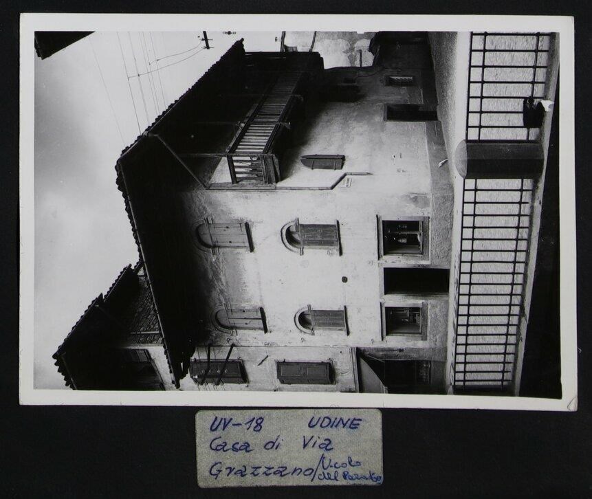 Udine, angolo tra via Grazzano e vicolo del Paradiso: veduta un'abitazione su due piani di origine cinquecentesca, realizzata in stile lombardo. Sulla facciata principale ci sono finestre ad arco in mattoni; è anche presente un ballatoio ligneo sulla facciata che dà sul vicolo al secondo piano. Agli inizi dell'Ottocento diventa di proprietà della parrocchia di Santa Maria e accoglie un'osteria.