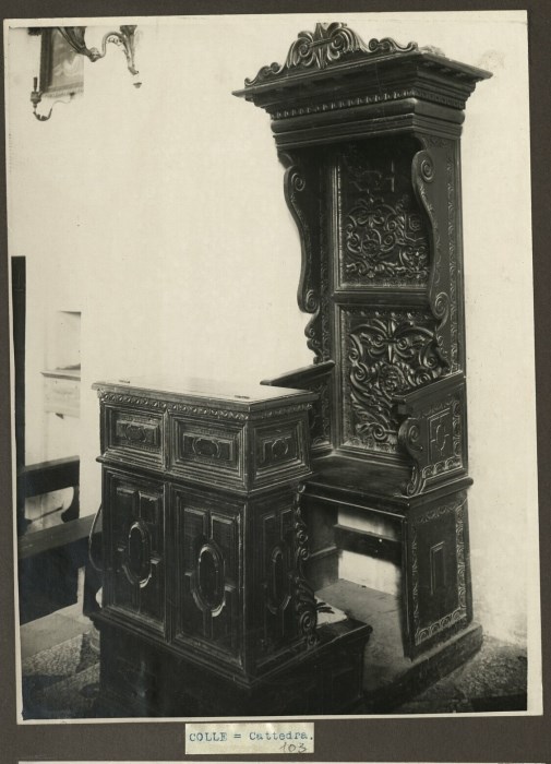 Cattedra conservata nella Chiesa di San Gottardo a Colle di Arba prima del terremoto del 1976