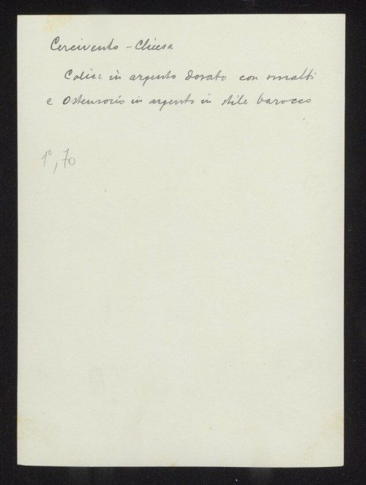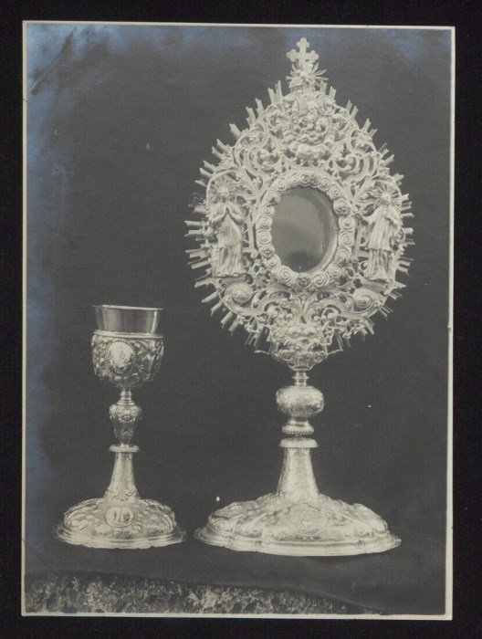Cercivento. Chiesa. Calice in argento dorato con smalti e ostensorio in argento in stile barocco