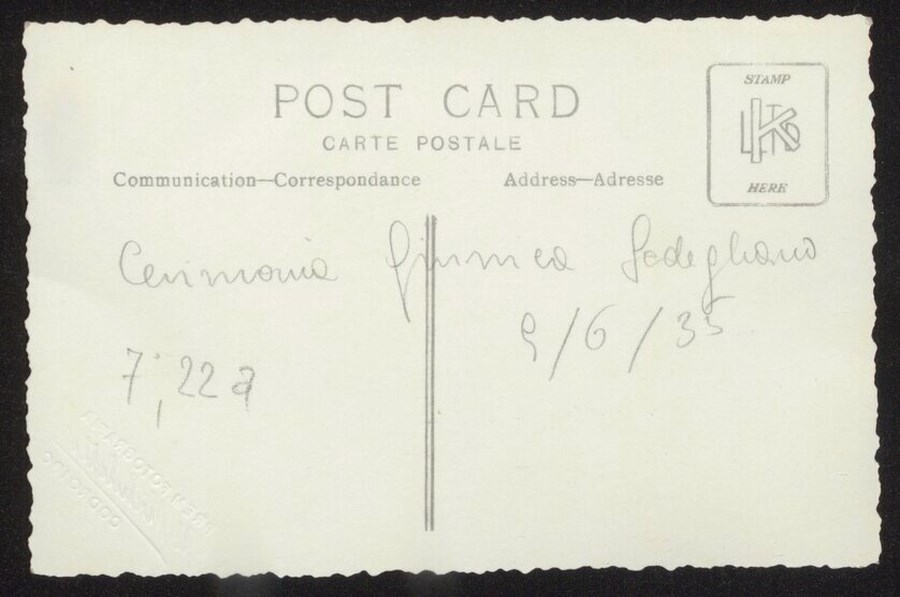 Gruppo di 18 giovani Balilla allineati in tre file si esibiscono durante una cerimonia ginnica a Sedegliano, il 9 giugno 1935. Alle loro spalle, prima della campagna, si assiepa un gruppo di spettatori e anche una piccola banda musicale: si vedono infatti quattro tromboni. L'immagine fa parte di un gruppo di 3 fotografie scattate nel corso dello stesso evento.